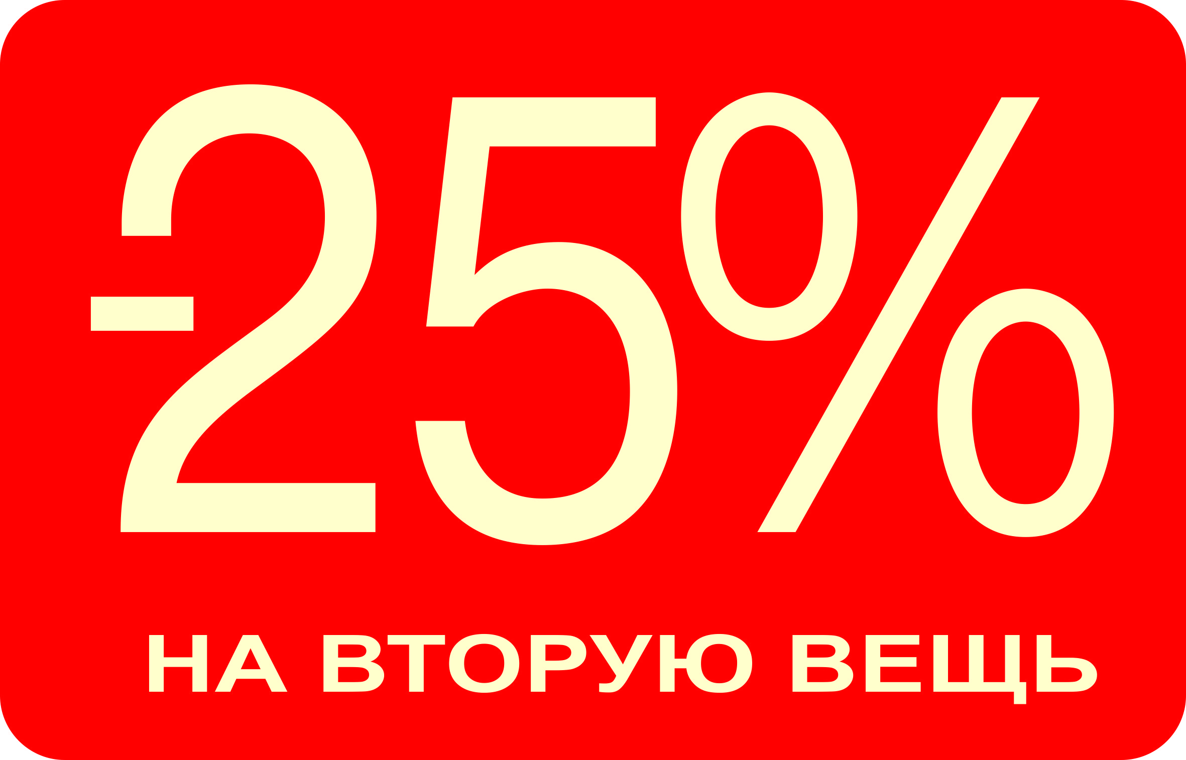 *Скидка 25% не действует на товар со скидками. Если в чеке второй вещью по стоимости является уценённый товар (на ценнике перечёркнута старая цена и указана новая цена) – скидка 25% на эту вещь действовать не будет.